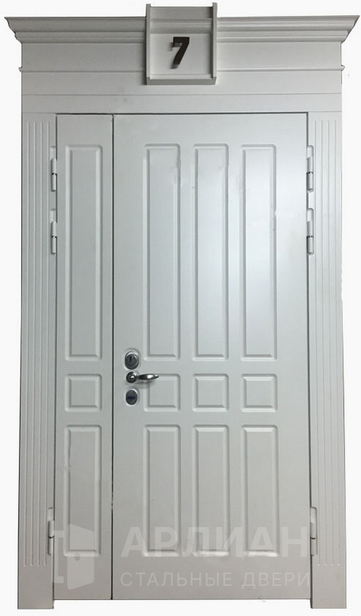 Двустворчатая входная дверь со стеклопакетом №18