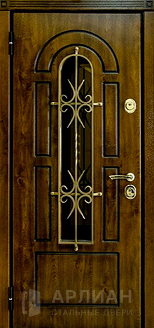 Металлическая дверь МДФ шпон со стеклом и ковкой №19