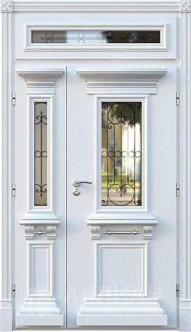 Парадная металлическая дверь с остеклением фрамугой №15