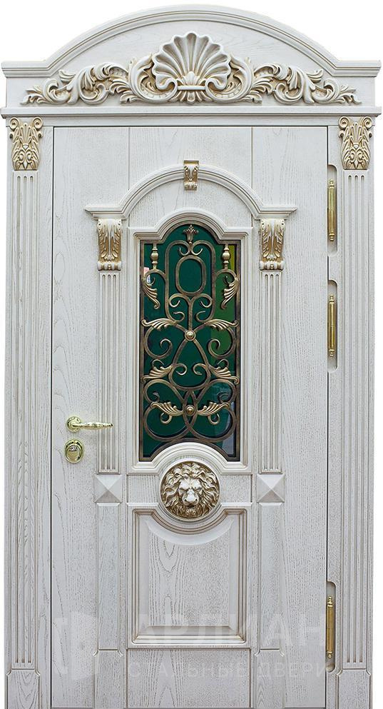 Фото «Арочная парадная дверь белого цвета с патиной №362»